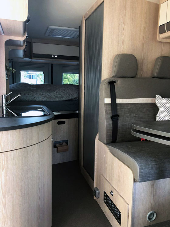 Übrigens ist unser Kastenwagen mit seinen 5,99 m ein kleiner Pössl. Damit kann man bequem in Städten auf ganz normalen Parkplätzen stehen, dass war uns bei der Entscheidung auch sehr wichtig.